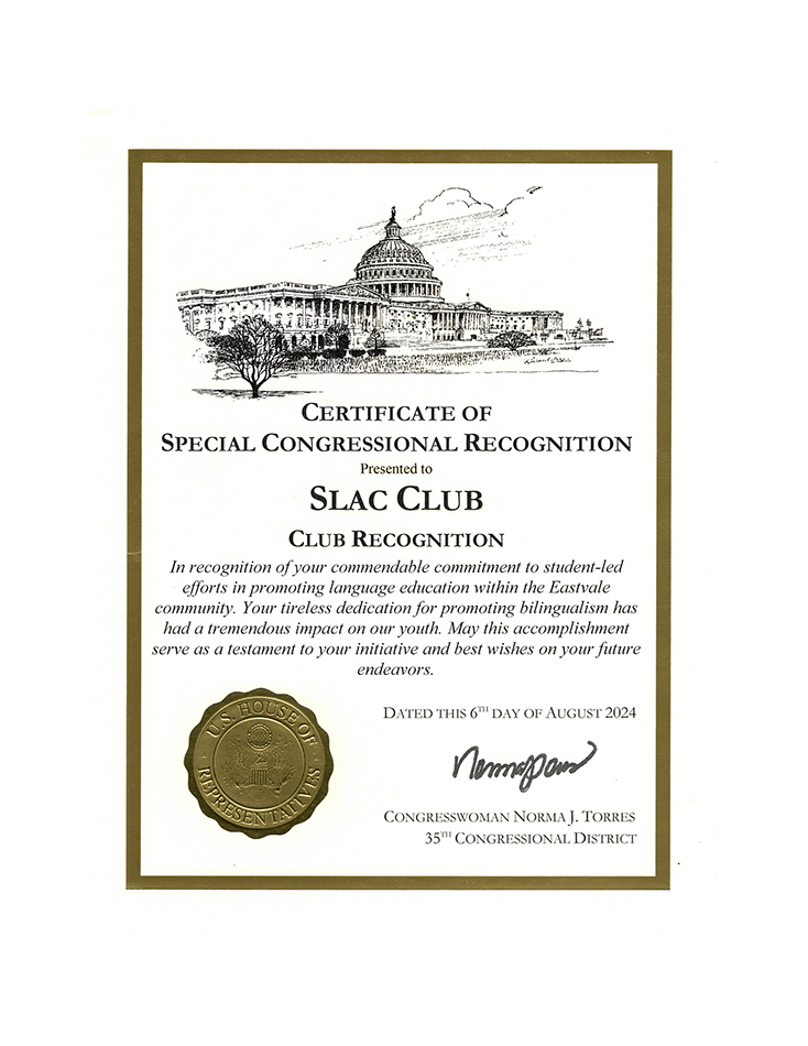 Since its founding, SLAC has been an active presence in community activities and civic planning discussions in Eastvale City.On the club’s first anniversary in August 2024, Congresswoman Norma